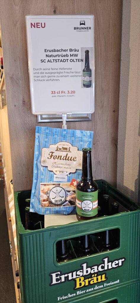 Unser SC Altstadt Bier kann beim Getränke Brunner Laden an der Schulstrasse 1 in Gretzenbach für 3.20 CHF pro Flasche gekauft werden. Das SC Altstadt Fondue ist im Brunner Laden ebenfalls zu den oben erwähnten Preisen erhältlich.